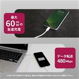 USB PD(Power Delivery)で最大60Wの充電に対応。ハイパワーな充電器と併用すれば、接続機器を通常の充電よりも短時間で充電できます。