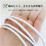 ナイロン素材でありながら絡みにくいブレイデッド(編み込み)ケーブルです。折り曲げ試験1万回の耐久性をもち、普段使いに最適な製品です。