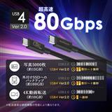 USB4 Version 2.0(Gen4)規格に準拠し、最大80Gbpsの超高速転送を実現しています。従来のUSB4(40Gbps)ケーブルの約2倍の速度で、8K動画やRAWデータなどの大容量ファイルもスムーズに転送できます。