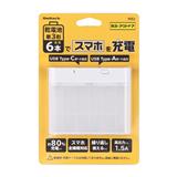最大1.5A出力でスマートフォンなどを充電できます。一部スマートフォンではバッテリーが0%の状態から約80%充電が可能です。