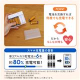 単3形のアルカリ乾電池または充電式ニッケル水素電池を6本セットするだけで使える、乾電池式のモバイルバッテリーです。電池を交換することで繰り返し使うことができます。※本製品に乾電池は付属しておりません。