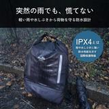 生活防水相当のIPX4に対応しており、突然の雨や水しぶきがかかるシーンでも安心して使えます。アウトドアやフェスなど天候が変わりやすい場面でも、荷物をしっかり守れる防水設計です。
