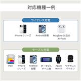 本製品は最大15Wのワイヤレス充電に対応しています。Qi2やMagSafe対応機器ではマグネット吸着によるワイヤレス充電ができ、Qi2やMagSafe非対応のワイヤレス充電対応機器でもワイヤレス充電が可能です。