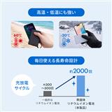 電池の電解質にゲル状素材を採用し、従来のモバイルバッテリーに比べて発火リスクを低減。劣化しにくい構造の為約2000回の充放電サイクルに対応しており、毎日の使用でも長く使える設計です。また-20℃~60℃の高温や低温にも強いい特長があります。