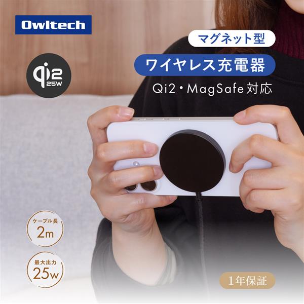Qi2認証取得 Qi2.2対応 最大25W ケーブル一体型ワイヤレス充電器