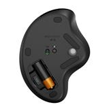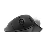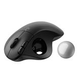 Logitech International本社のスイスにある「LOGI エルゴ・ラボ」にて、人間工学の視点から仕事を快適にするために役立つツールとして設計・開発されました。手のひらをしっかり支える形状で、長時間の使用でも疲労感を軽減します。より自然な位置で操作できるようスクロールホイールとクリックスイッチを右に傾けて配置しており、親指でボールをスムーズに操作できます。