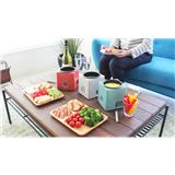 材質本体:ABS・アルミニウム、鍋:アルミニウム(フッ素樹脂塗膜加工)、フォーク:ステンレス・ABS
