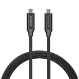 付属の Type-C to C ケーブルは、60W 電力伝送が可能で強度に優れたアルミボディにニッケルメッキコネクタを採用したナイロン編組で丈夫な高品位ケーブルになっております。