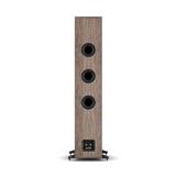 再生周波数範囲 34 Hz - 30 kHz(±3 dB) 感度 90 dB(2.83 V / 1 m) 公称インピーダンス 4 Ω 推奨アンプ出力 50 - 300 W クロスオーバー方式 2-1/2 + 1/2ウェイ クロスオーバー周波数 400 / 2,100 / 14,000 Hz トゥイーター 17 × 45 mm プレーナー型トゥイーター、29 mm Low Loss ソフトドーム・トゥイーター ミッドレンジ/ウーファー 180 mm SMCウッドファイバー・クラリティ・コーン・ドライバー ×3 エンクロージャータイプ バスレフ型 バスレフチューニング周波数 35 Hz ターミナル シングルワイヤリング 外形寸法(H×W×D・グリル含む) 1,100 × 214 × 376 mm 外形寸法(スパイク等含む) 1,126 × 318 × 376 mm 質量 24.6 kg(グリル含む) カラー BA:ブラック・アッシュ、NO:ナチュラル・オーク、WA:ウォルナット、WH:ホワイト 付属品 取扱説明書、保証書、フロントグリル、ラバーパッド、ラバーフット、スパイク、ロックナット、スパイクアウトリガー、スパイクアウトリガー用ネジ、ツールキット