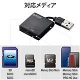 SDカードシリーズ、メモリースティックシリーズなど、主要なメディアがアダプタなしで読み書きできるメモリカードリーダ。