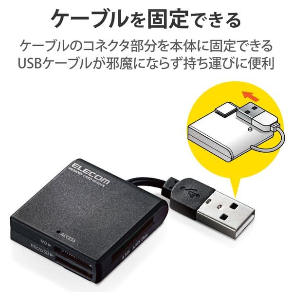 ELECOM メモリリーダライタ ケーブル固定 SD+MS対応 ブラック MR-K009BK
