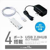 消費電力が大きなハードディスクドライブなどのUSB機器も安心して使える!ACアダプタが付いた4ポートUSB2.0ハブ。