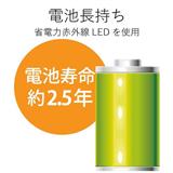 ■Blue LEDやレーザーを使用したマウスよりも消費電力が小さいため、約2.5年間電池を取り替えずに使用することが可能です。