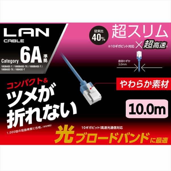 ELECOM LANケーブル CAT6A スーパースリム 爪折レ防止 10m ブルー LD-GPASST-BU100