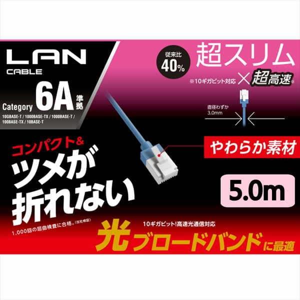 ELECOM LANケーブル CAT6A スーパースリム 爪折レ防止 5.0m ブルー LD-GPASST-BU50