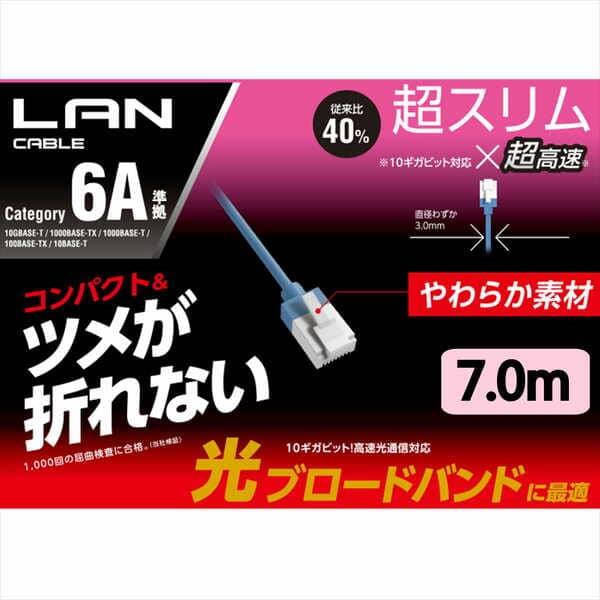 ELECOM LANケーブル CAT6A スーパースリム 爪折レ防止 7.0m ブルー LD-GPASST-BU70