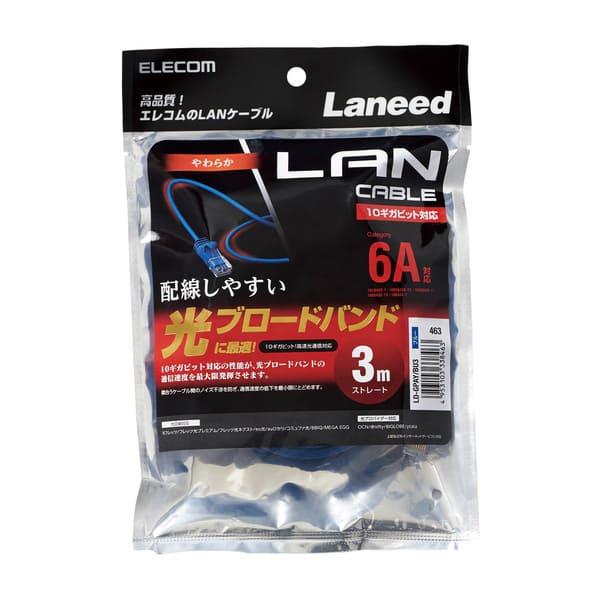 ELECOM やわらかLANケーブル CAT6A 3m ブルー LD-GPAY-BU3