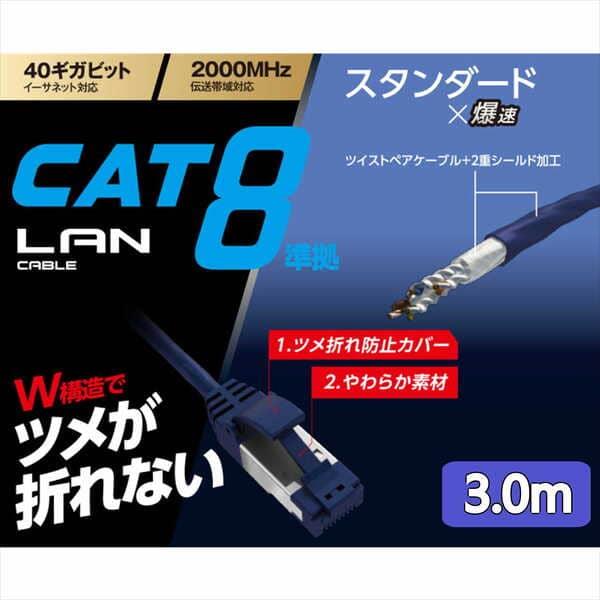 ELECOM LANケーブル CAT8準拠 爪折レ防止 3m ブルーメタリック LD-OCTT-BM30
