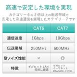 ■Cat6の2倍以上である600MHzまでの高周波帯域まで対応しており、ノイズ干渉にも強く、高速で安定したネットワーク環境を実現します。