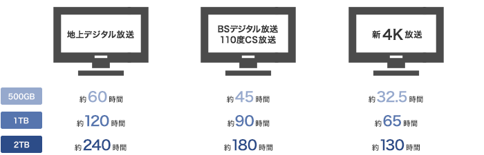 ポータブルタイプは500GB~2TBまでをラインナップ。 たっぷり録画するなら、大きな容量がおすすめです。