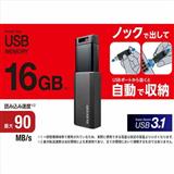 ELECOM USBメモリ USB3.1(Gen1) ノック式 16GB オートリターン機能 1年保証 ブラック MF-PKU3016GBK