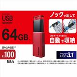 ELECOM USBメモリ USB3.1(Gen1) ノック式 64GB オートリターン機能 1年保証 レッド MF-PKU3064GRD