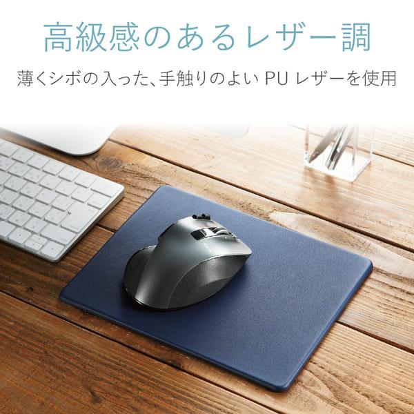 MP-SL01シリーズと比較し操作面が1.5倍拡大!どこにでも馴染むシンプルデザインで手触りのよいPUレザーを使用したソフトレザーマウスパッド。