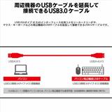 USB3.0(Aタイプ:オス)のインターフェースを持つ周辺機器のUSBケーブルの長さが足りないときに、延長してパソコンと接続できるUSB3.0延長ケーブル。