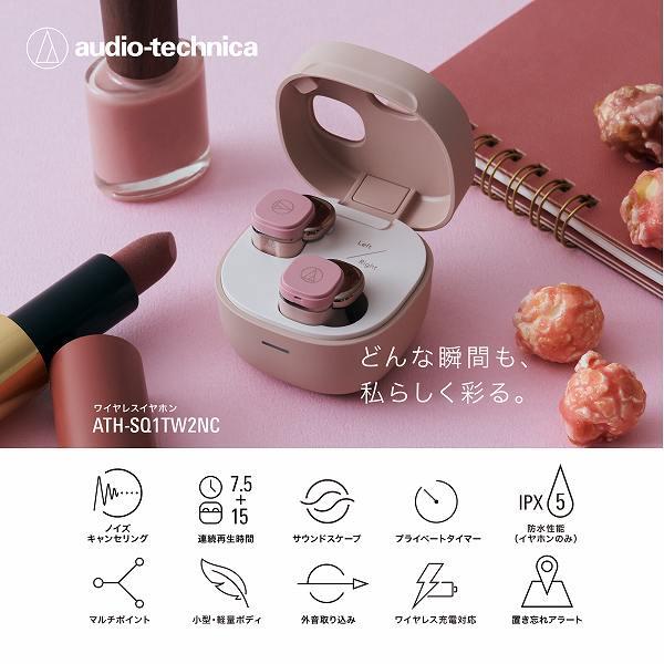 【2月27日発売】  オーディオテクニカ イヤホン[ワイヤレス(左右分離)/Bluetooth/ノイズキャンセリング対応/Qi充電対応/プライベートタイマー機能/マルチポイント/IPX5/ピンク] ATH-SQ1TW2NC-PK