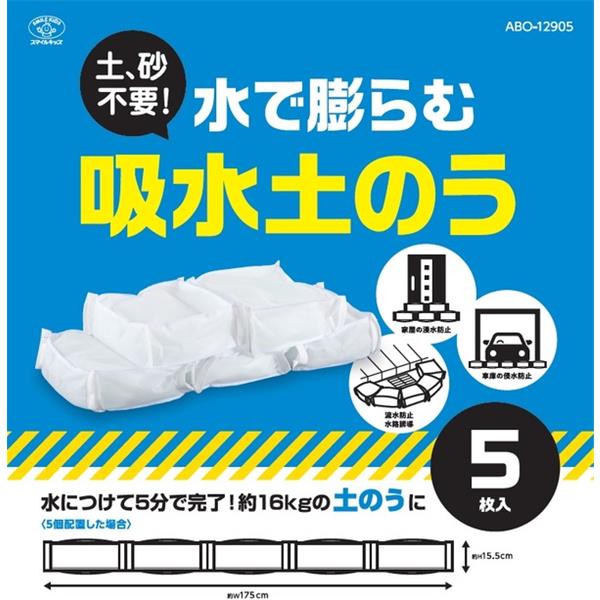 スマイルキッズ 吸水土のう 家屋の浸水防止 車庫の浸水防止 水路誘導 5枚セット ABO-12905