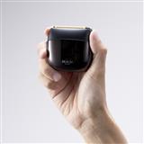 往復式6枚刃で硬いヒゲもスムーズにカット。手のひらサイズで持ち運びに便利。