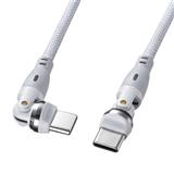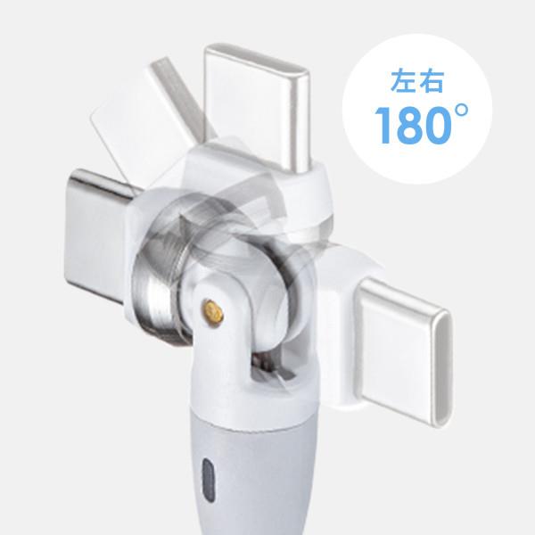 両端のコネクタが540度(左右180度+水平360度)自由自在に回転。操作性と耐久性を大幅に向上させたUSB Type-Cケーブル。PD100W対応。ホワイト・1m。