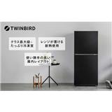 TWINBIRD 冷蔵庫 [ミラーガラスデザイン]【2ドア/右開き/121L/ブラック】 HR-GJ12B
