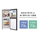 冷凍室は買い物カゴまるごと2つ分もの食料が入る、73Lの大容量。冷凍冷蔵庫の比率を見直した大きな冷凍室は、前面が透明な4段の引き出しを採用し整理整頓をしやすくしました。作りおきや冷凍食品がたっぷり収納でき、お買い物の手間と時間を削減。毎日の暮らしを支えます。 ※2022年4月現在200L以下クラス 国内販売 ツインバード社調べ