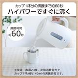 沸騰時間カップ1杯:約60秒 ※室温・水温23度、定格消費電力でカップ1杯分約140mlの沸騰時間