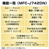 プリント、コピー、スキャン、ファクス、コードレス電話機、USB接続、スマホ接続、タッチパネル液晶、前面給紙トレイ、4色独立インク。