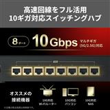 10Gインターネット回線・10G対応ルーター/HGW(ホームゲートウェイ)や、10GBASE-T/5GBASE-T/2.5GBASE-T対応のパソコン・NAS・有線LANアダプターなど、10GBASE-Tおよび5GBASE-T/2.5GBASE-Tに対応したLANポートを8ポート備えた本製品があれば10Gネットワーク環境を構築可能です。