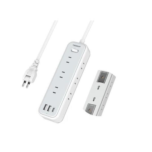 TESSAN コード式12ポート電源タップ 1台12役でも干渉しにくい設計 180°スイングプラグ 強力マグネット付き PS02AJP
