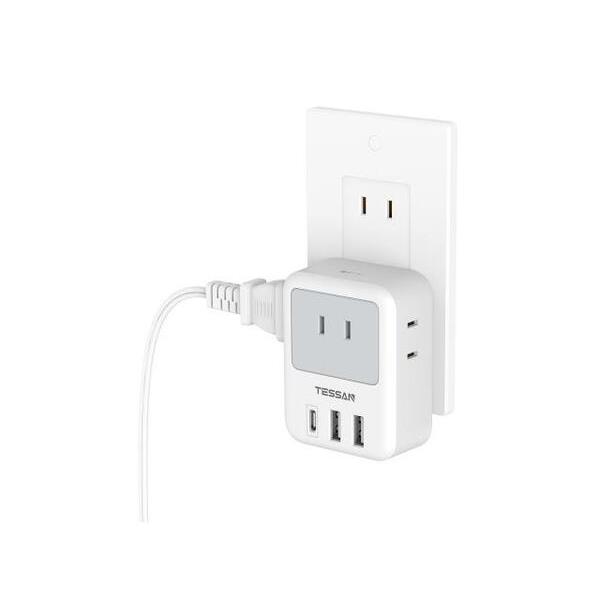 TESSAN 6ポート電源タップ 小型軽量設計 1台6役でも干渉しにくい設計 合計最大出力1500W WS01AJP