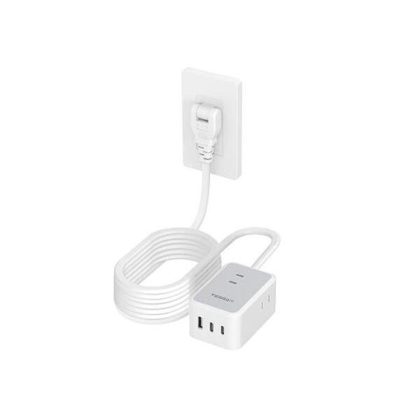TESSAN コード式6ポート電源タップ 180°回転のスイングプラグ 1台6役でも干渉しにくい設計 コンパクトサイズ PS01CJP