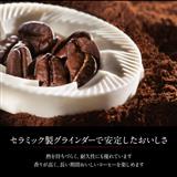 コーヒー豆を挽く際に発生する摩擦熱を抑え、コーヒーの香りが飛びにくいセラミック製フラット刃のグラインダーを搭載。