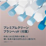 搭載されているプレミアムクリーンブラシヘッドは、ベースに柔軟性のあるゴム素材を採用しており、毛先の振れ幅が大きく、歯に触れる面積は従来のホワイトプラスブラシヘッドの約4倍。歯と歯ぐきに密着し、磨きにくい場所にもしっかりと毛先が届き、歯垢をかき出し、手磨きの最大10倍の歯垢を除去します*¹。また、柔軟性のあるベースなので、過剰なブラッシング圧力も吸収しながら洗浄します。