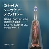 ソニッケアーは、毎分約31,000ストロークの高速振動で歯垢をたたき浮かせ、ブラシヘッドの幅広い振幅で浮かせた歯垢をはらい落とします。同時に、それらの動きが口の中の唾液の流れ「音波水流」を発生させ、やさしく、効果的に歯垢をかき出すサポートをします。