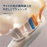 歯を磨きながら同時に、ブラシヘッドのサイドの毛が歯と歯ぐきの境目をやさしくブラッシングし、約2週間で歯ぐきの健康を推進*⁴。毛自体もやわらかめの毛を使用しており、柔軟性のある毛がブラシ圧が強くなり過ぎるのを防ぎます。