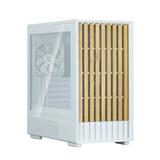 温もりある木目調パネルと強化ガラスを採用したミニタワーPCケース ホワイトモデルです。冷却性能とデザイン性を両立し、最大9基のファンや240mmラジエーターにも対応。組み立てやすさと美しさを兼ね備えた一台です。