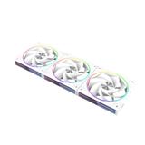 リバースブレード仕様を採用した120mmケースファン(3個セット) ホワイトモデルです。マグネットとポゴピンによる接続方式で配線を簡素化し、ARGBとインフィニティミラーでケース内を美しく演出します。