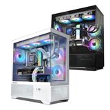 スタイリッシュなデザインと高い機能性を両立したミドルタワー型PCケース ホワイトモデルです。ARGBファンを3基搭載し、優れた冷却性能を発揮するとともに、内部コンポーネントを美しく演出します。