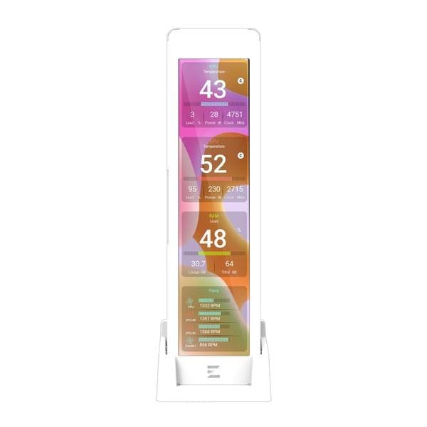 9.16型IPSパネルを搭載したディスプレイ ホワイトモデルです。CPUやGPUなどのシステム情報をリアルタイムで表示できます。卓上ディスプレイとしても利用でき、自作PCのモニタリングとデザイン性を両立します。