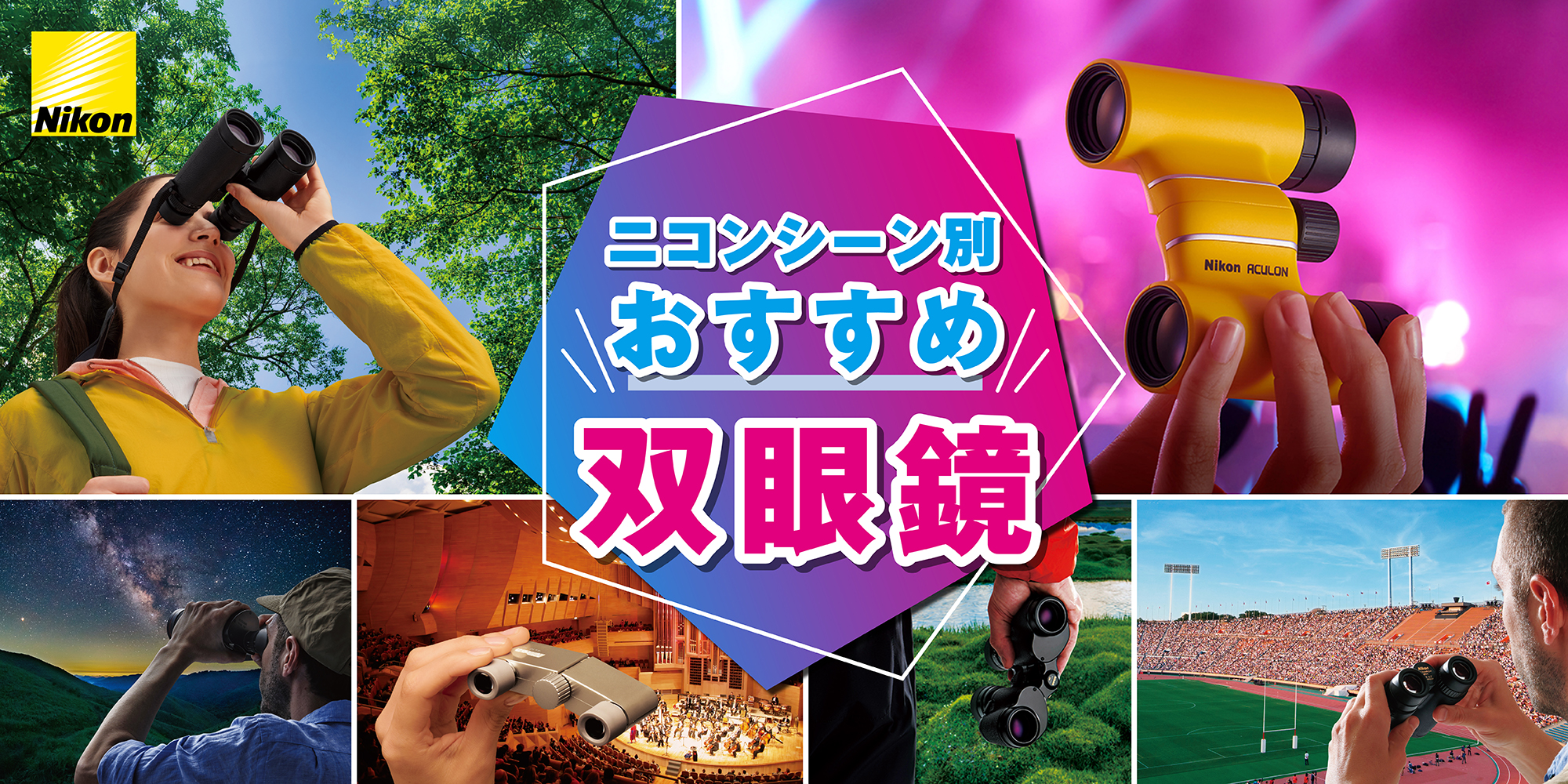 双眼鏡には倍率やサイズなど種類がたくさんあり、使用目的に合わせて選ぶことが重要です。 コンサート、スポーツ観戦、天体観察、アウトドア、バードウォッチング、観劇、美術館博物館など、シーンごとにおすすめなニコン双眼鏡の選び方と基本的な使い方をご紹介!