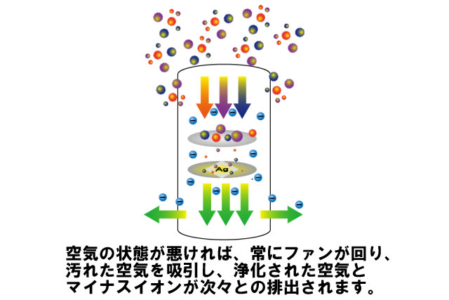 私たちの生活空間には無数のチリや有害物質が浮遊しています。また、目に見えない臭いも一緒に。